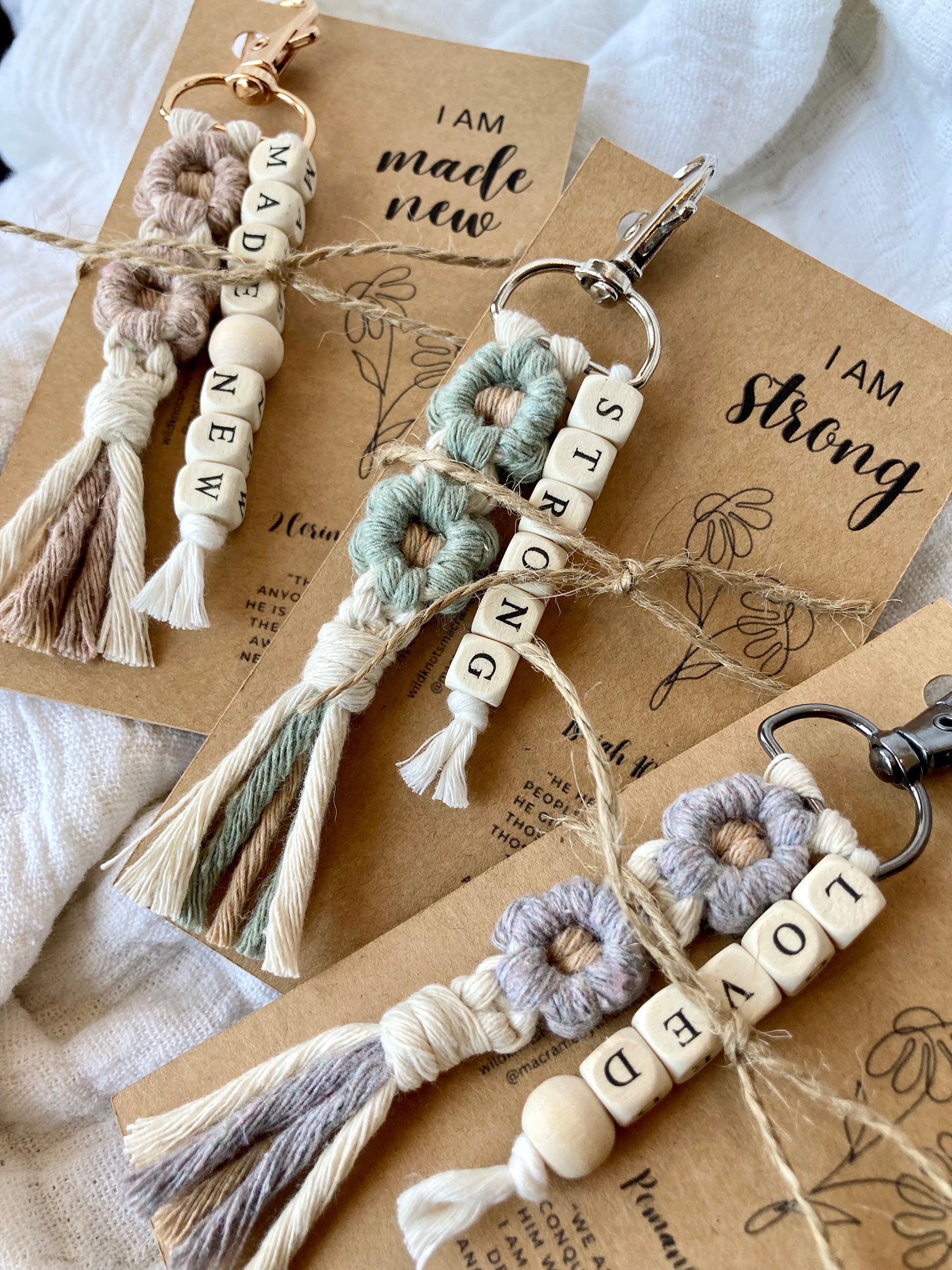 These keychains come beautiful packaged as shown in photos where the package itself can be cut in half to create a Bible bookmark!! The recipient will see this little surprise message when they remove their macrame keychain to reveal instructions on cutting the packaging to claim their Bible bookmark!! SO perfect to be gifted :)
